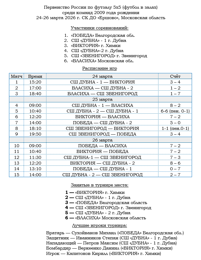 Первенство России по футзалу 5х5 (футбол в залах) среди команд 2009 года рождения