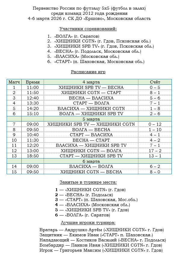 Первенство России по футзалу 5х5 (футбол в залах) среди команд 2012 года рождения