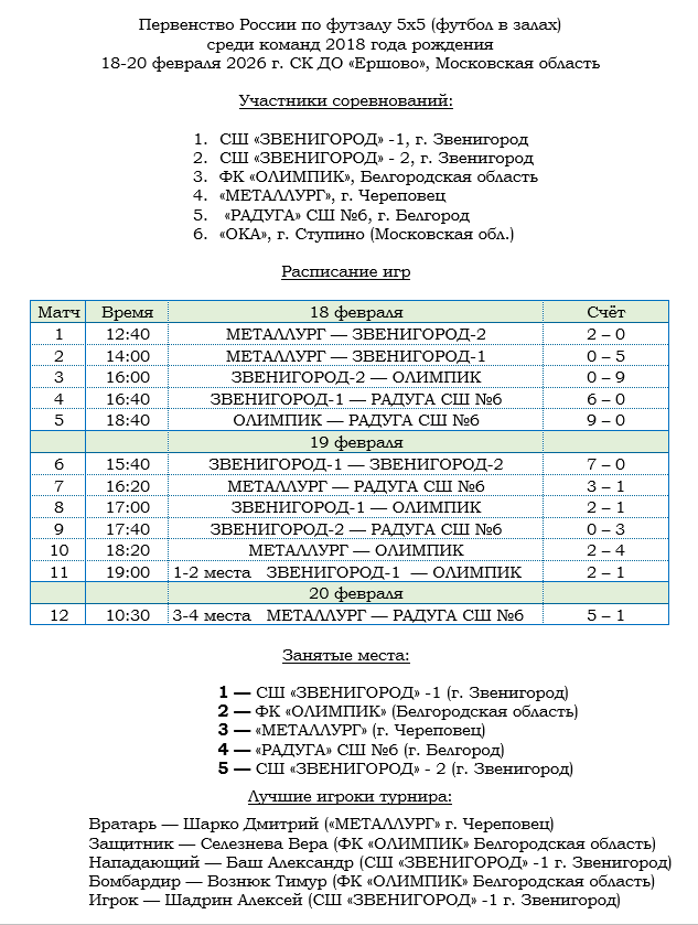 Первенство России по футзалу 5х5 (футбол в залах) среди команд 2018 года рождения